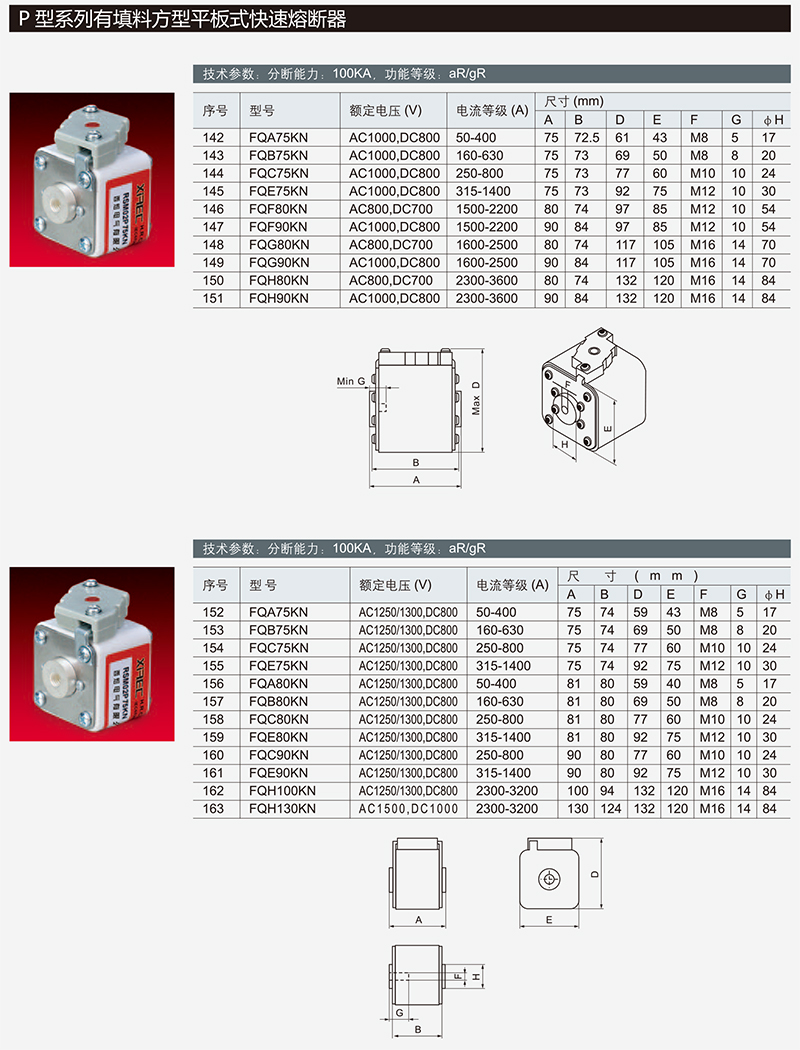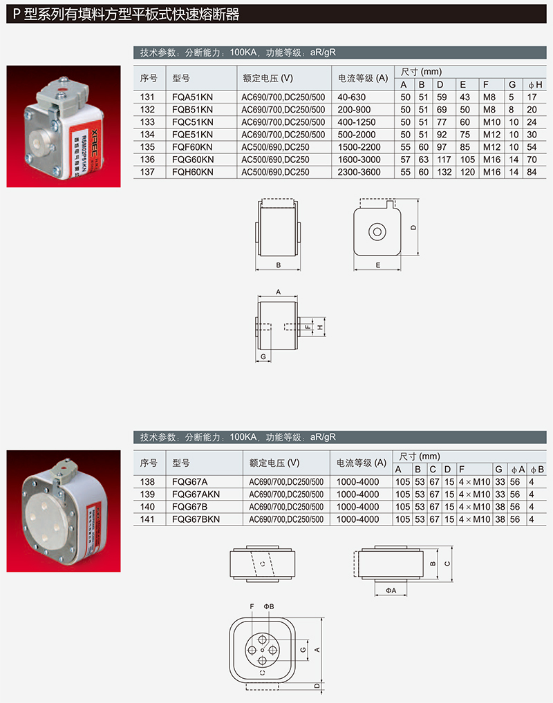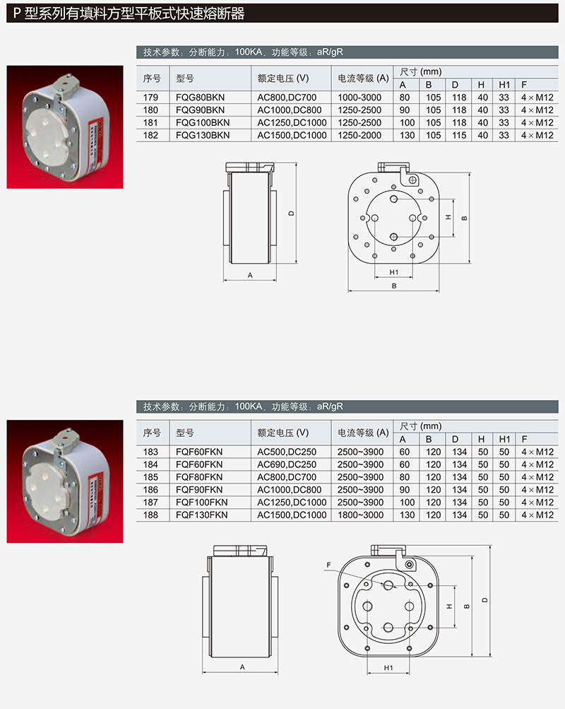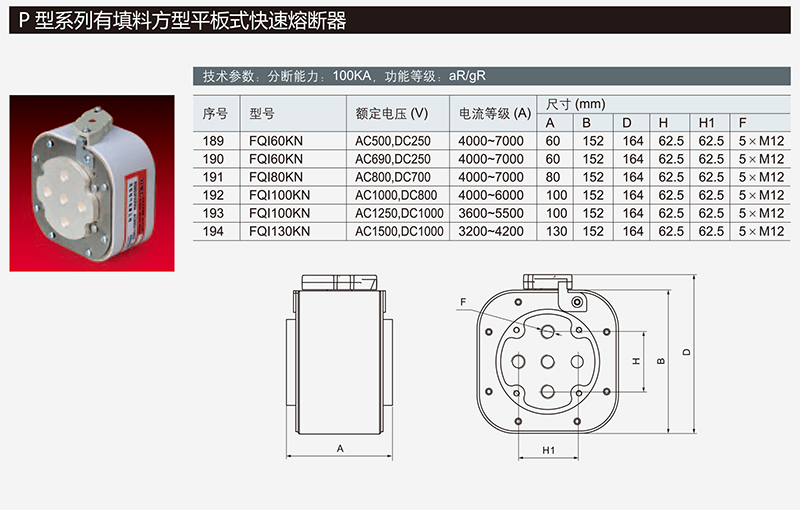 P型有填料方型平板式快速熔断器